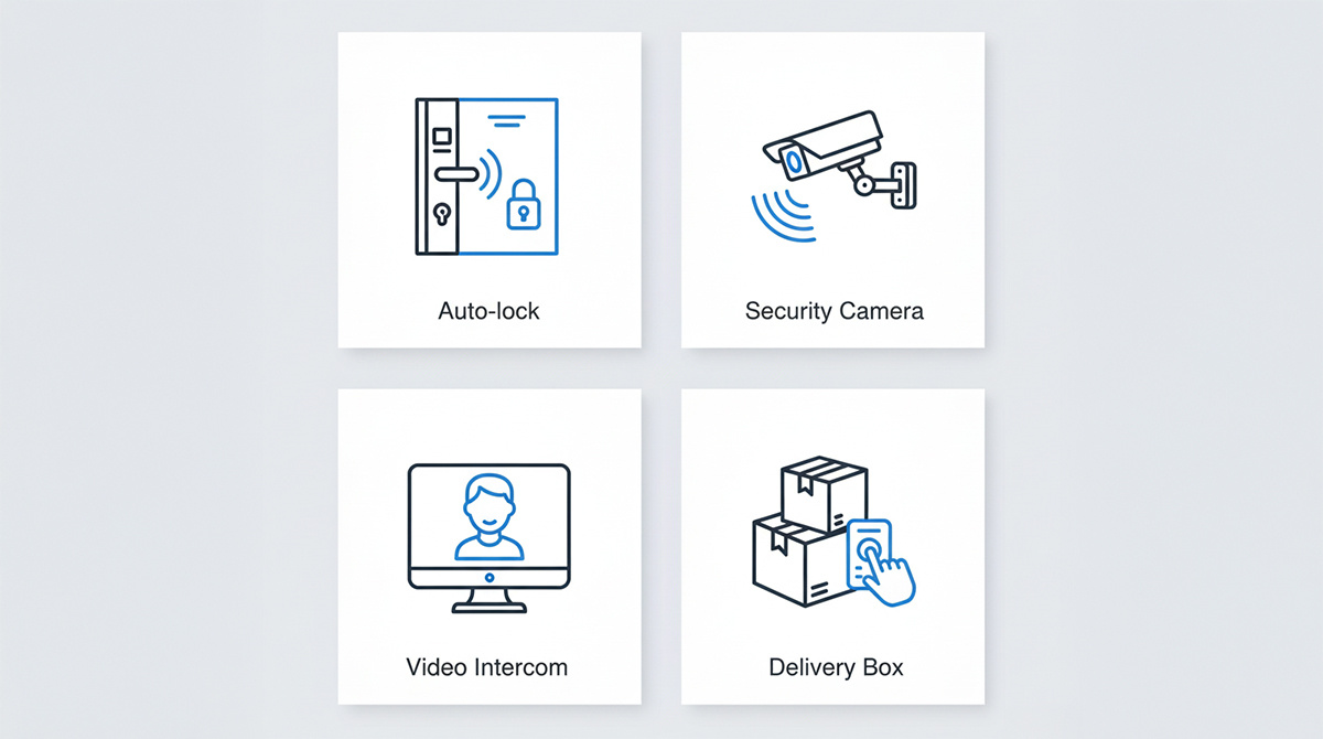 もはや説明不要の必須設備です。できれば、エントランスと住戸玄関の2ヶ所で施錠を確認する「ダブルオートロック」だと、さらに安心感が高まります。 - 防犯カメラの「場所」と「質」