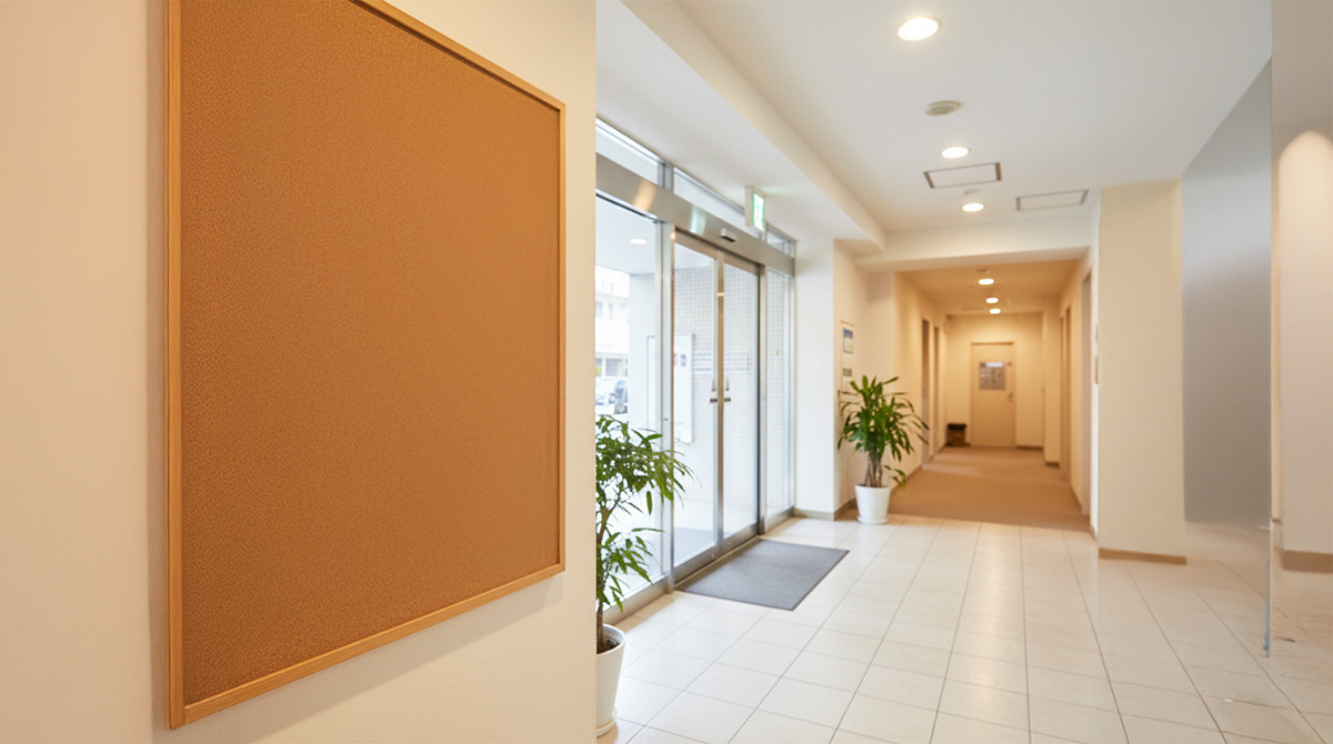 共用部が常にきれいに保たれているマンションは、住民の「自分たちの住まいは自分たちで守る」という意識、つまり管理組合がしっかり機能している証拠です。ゴミ一つ落ちていないエントランスは、それだけで犯罪を躊躇させる効果があります。 - 掲示板の内容
