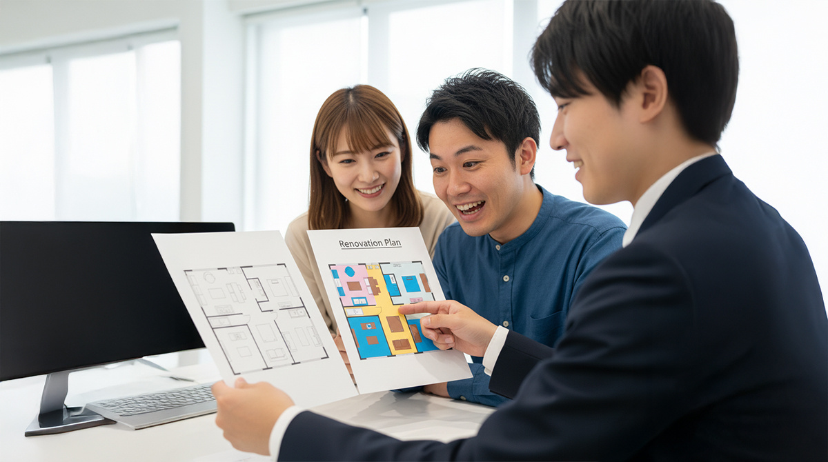自社ホームページやポータルサイトへの掲載、チラシ配布、既存のお客様への紹介などを行います。高翔バイセルの強みは、単に現状の写真を載せるだけでなく、「この家は、リノベーションでこんなに素敵になります」というCGパースやプラン図をセットで提案できることです。これにより、築古物件でも買主様の想像力をかき立て、早期売却へと繋げます。